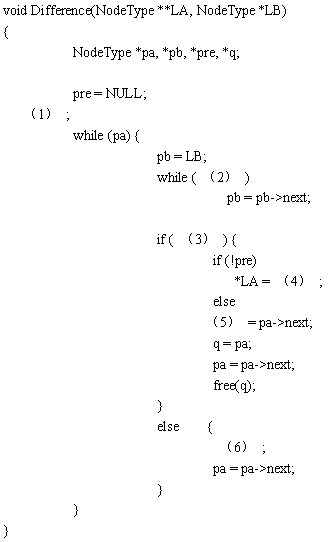 (5)pre->next,或(*pre).next,或其等价表示 (2分)